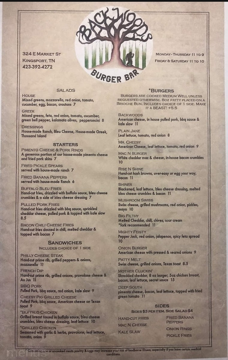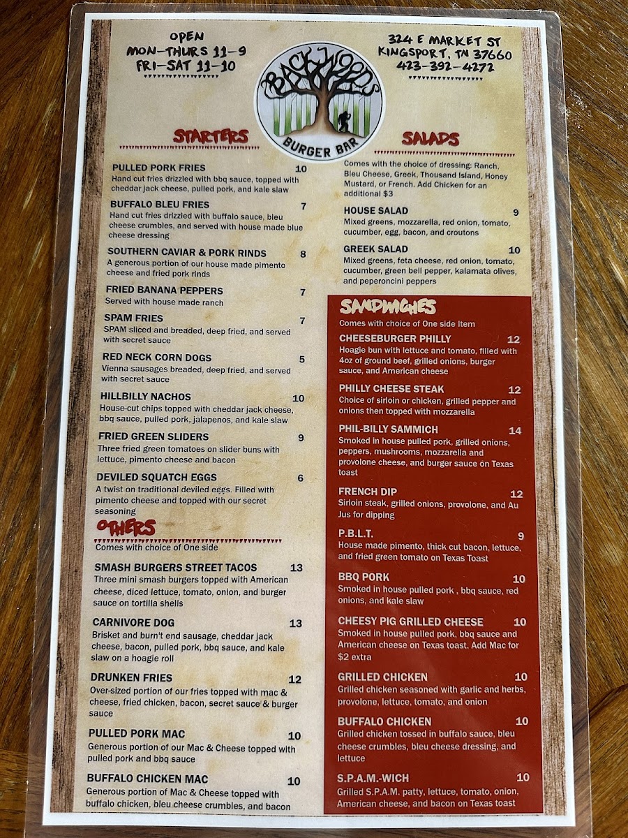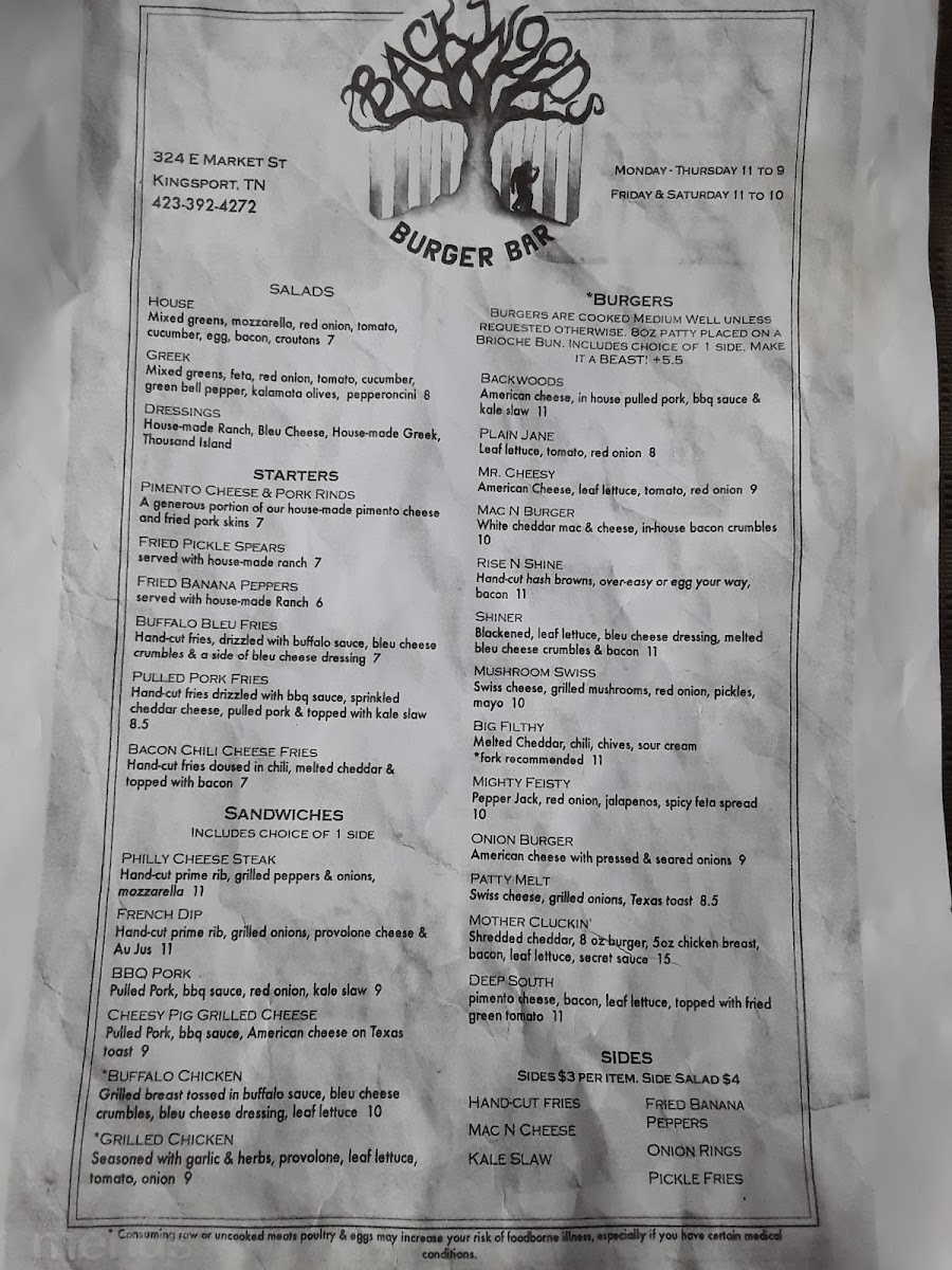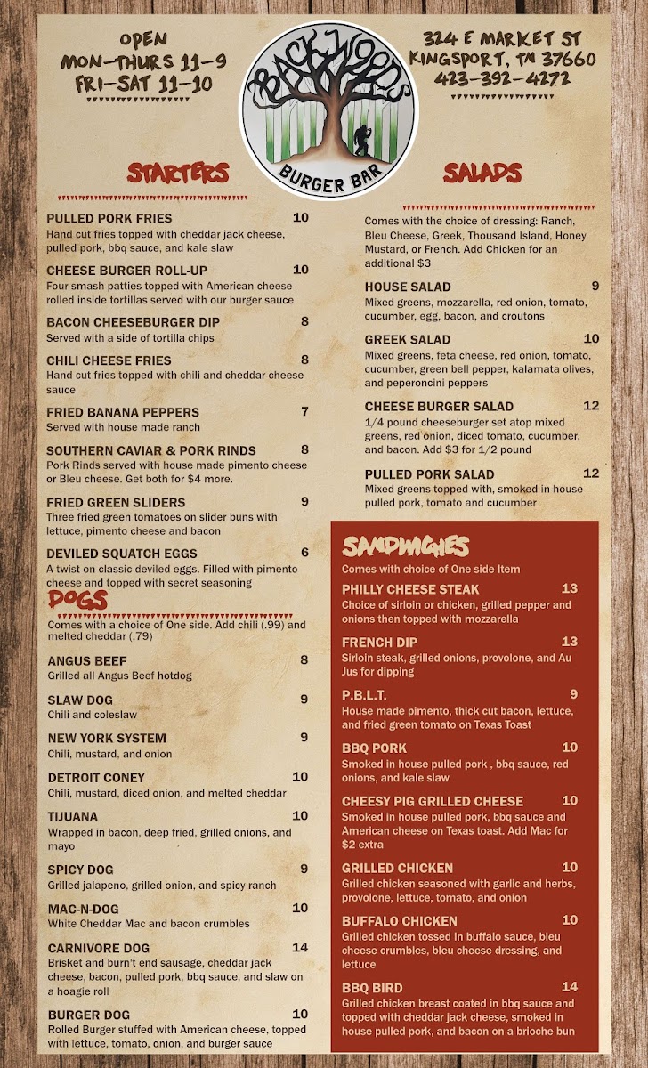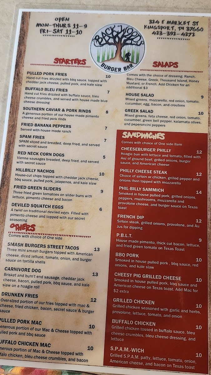 Welcome to Backwoods Burger Bar, your go-to destination for a memorable dining experience in Kingsport, TN. Nestled at 324 E Market St, this vibrant bar specializes in hearty burgers and indulgent hot dogs that promise to satisfy any appetite.